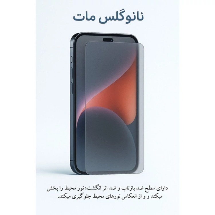 دارای سطح ضد بازتاب و ضد اثر انگشت؛ نور محیط رو پخش میکند و از انعکاس نورهای محیط جلوگیری میکند. برای کسانی که در فضای باز یا محیطهای پرنور از دستگاه استفاده میکنند ایدهآل است.